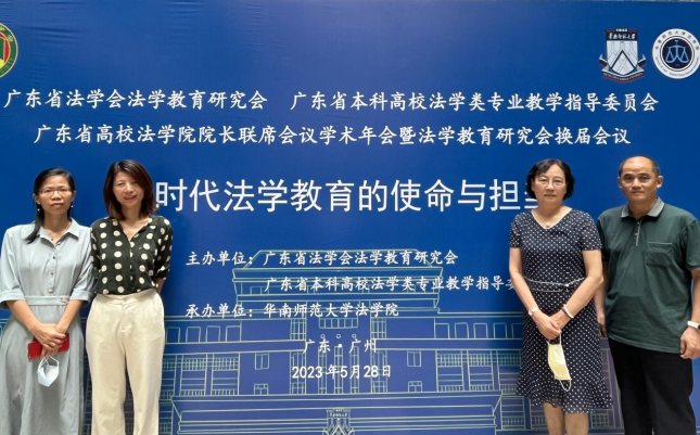 2023年5月28日上午,广东省法学会法学教育研究会、广东省本科高校法学类专业教学指导委员会、广东省高校太阳成集团tyc33455院长联席会议学术年会暨法学教育研究会换届会议在华南师范大学石牌校区举行。太阳成集团tyc33455党总支书记、执行院长李岚教授和叶秀副院长率领太阳成集团tyc33455部分教师到会参加交流和学习。