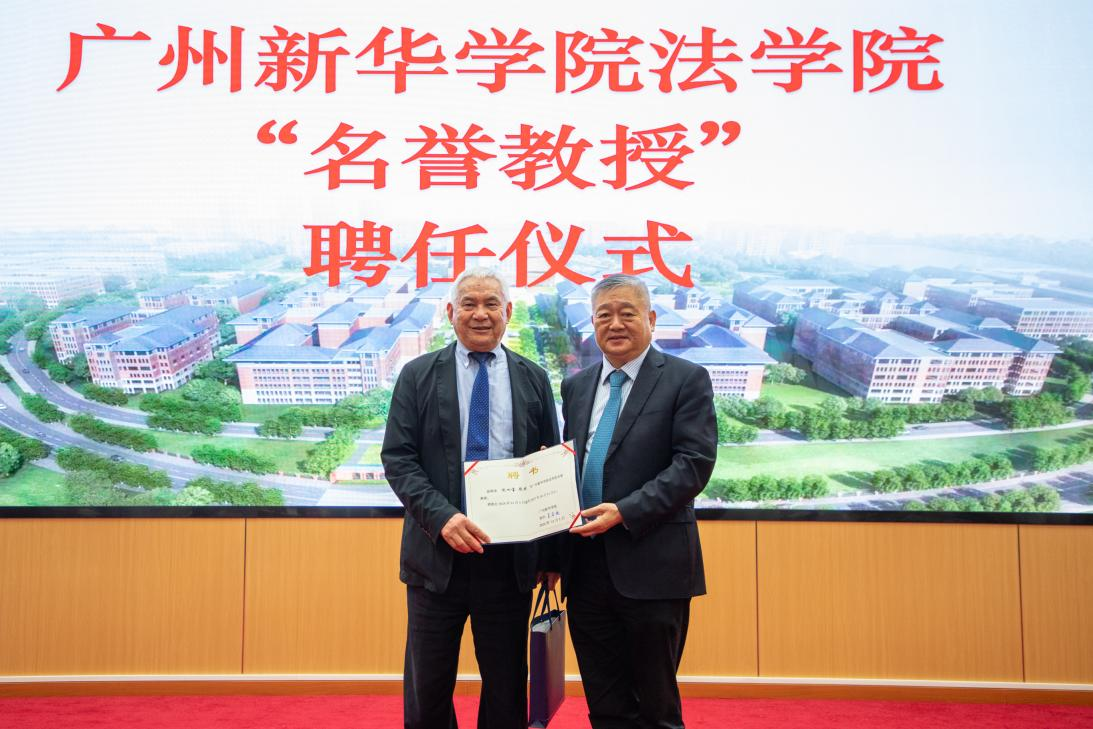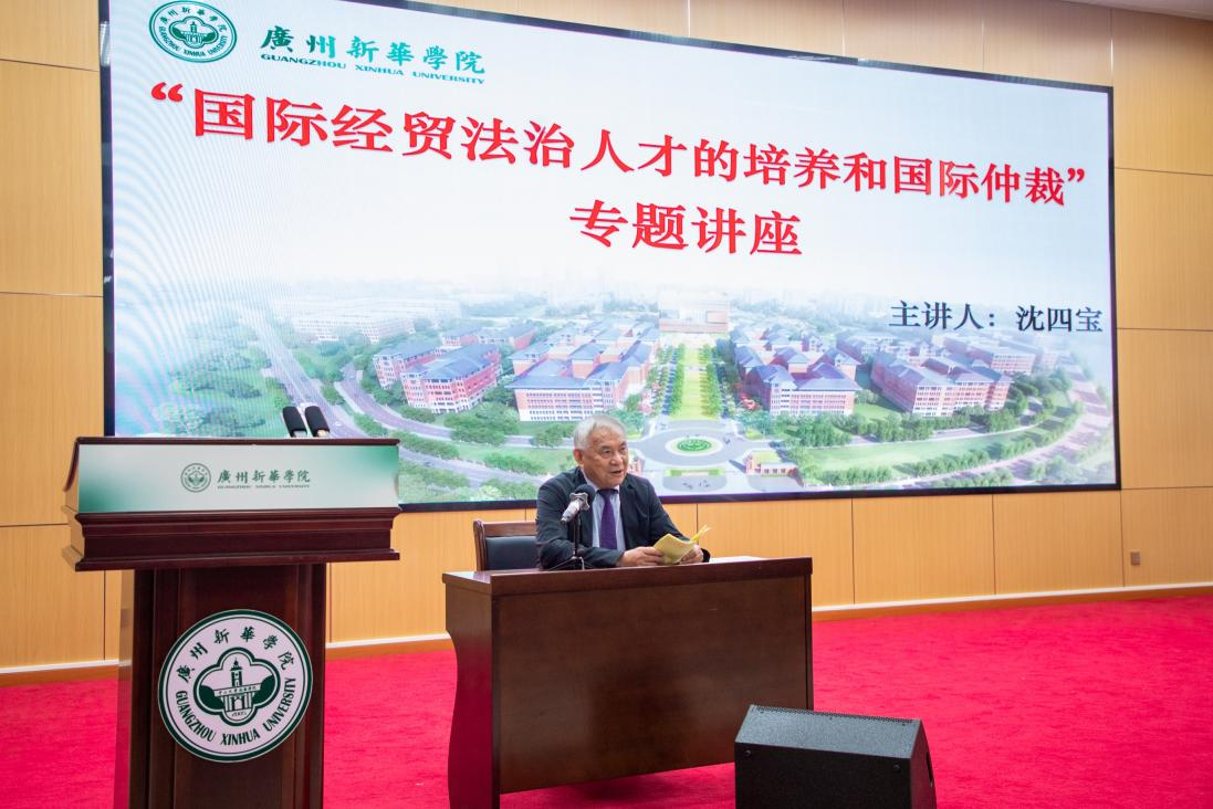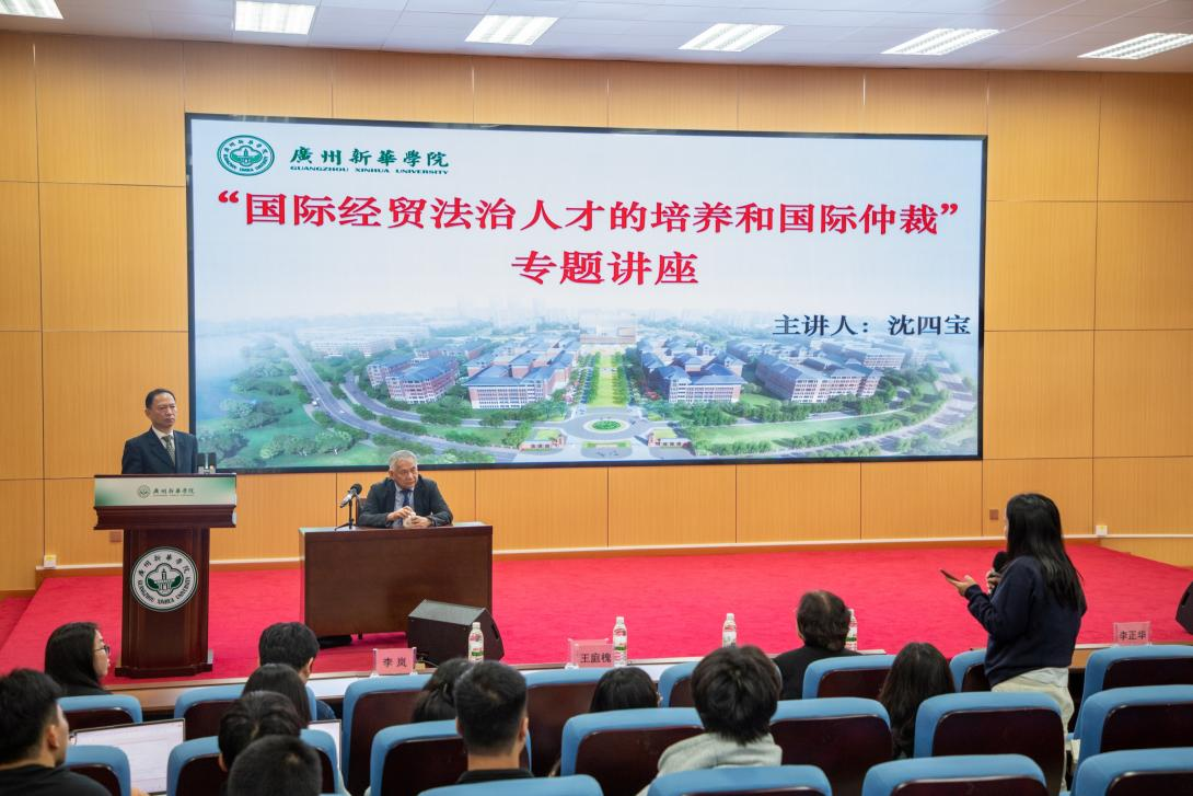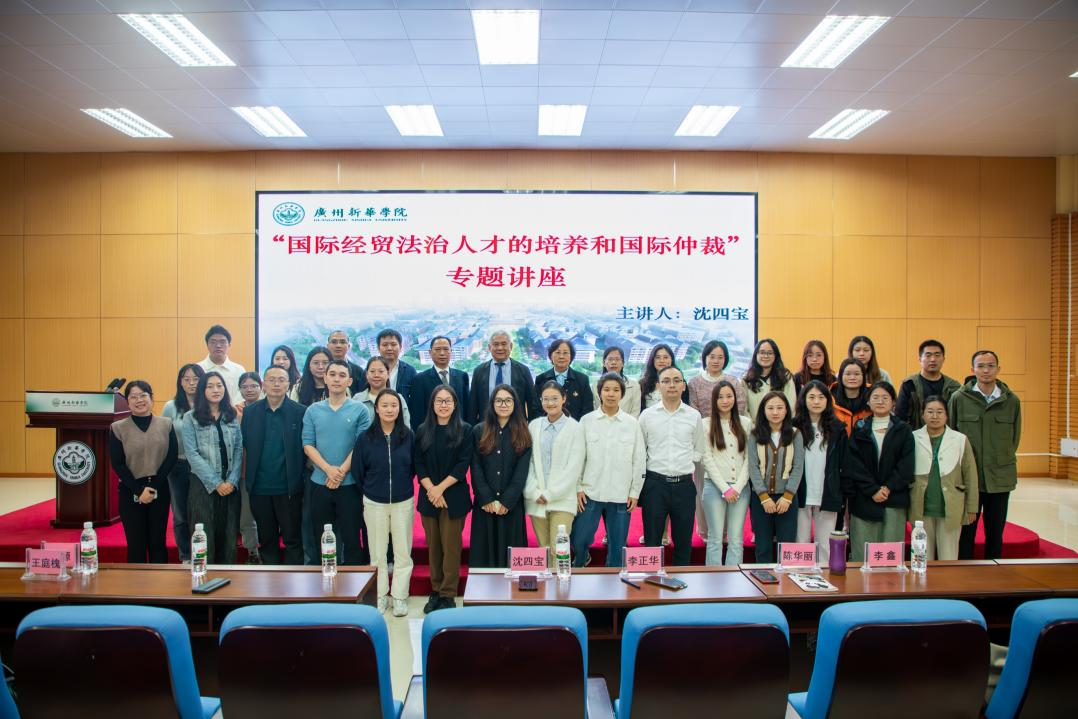 2024年11月25日上午,广州新华学院太阳成集团tyc33455迎来了一场意义非凡的盛会——“名师领航,师生同行”名誉教授聘任仪式暨沈四宝教授学术讲座。此次活动聚焦“国际经贸法治人才培养与国际仲裁”,在学界与校园内引发热烈关注,彰显学院深耕法学专业领域、接轨国际前沿的坚定决心。