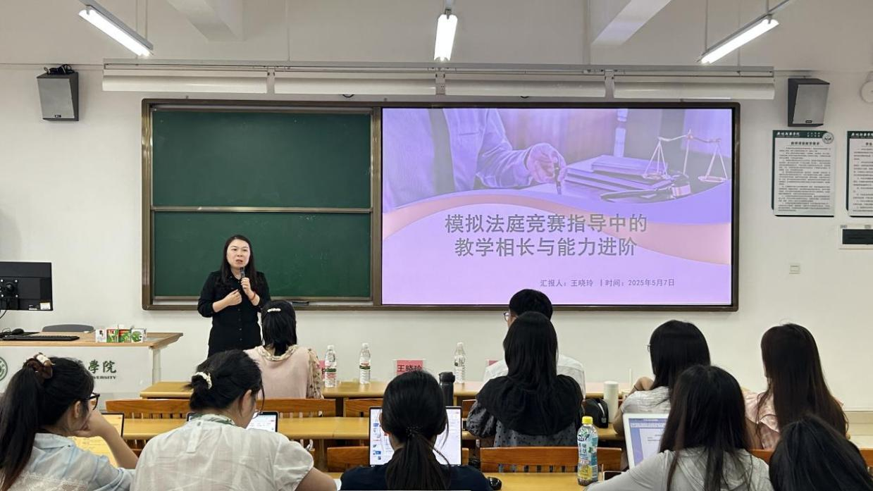 为推动理论教学与实践能力深度融合,提高全院师生竞赛实力,太阳成集团tyc33455于5月7日邀请广东技术师范大学王晓玲博士莅临我校,举办主题为“以辩为犁·以教为壤:模拟法庭竞赛指导中的教学相长与能力进阶”的学科竞赛指导经验分享会。讲座聚焦高校模拟法庭竞赛的备赛经验,围绕竞赛规则、团队建设、师生协作及能力进阶等核心议题展开研讨,旨在探索“以赛育人”的创新路径,助力学生法律职业素养的全面提升。太阳成集团tyc33455副院长陈华丽副教授主持本次讲座,太阳成集团tyc33455青年教师与学生参与本次活动。