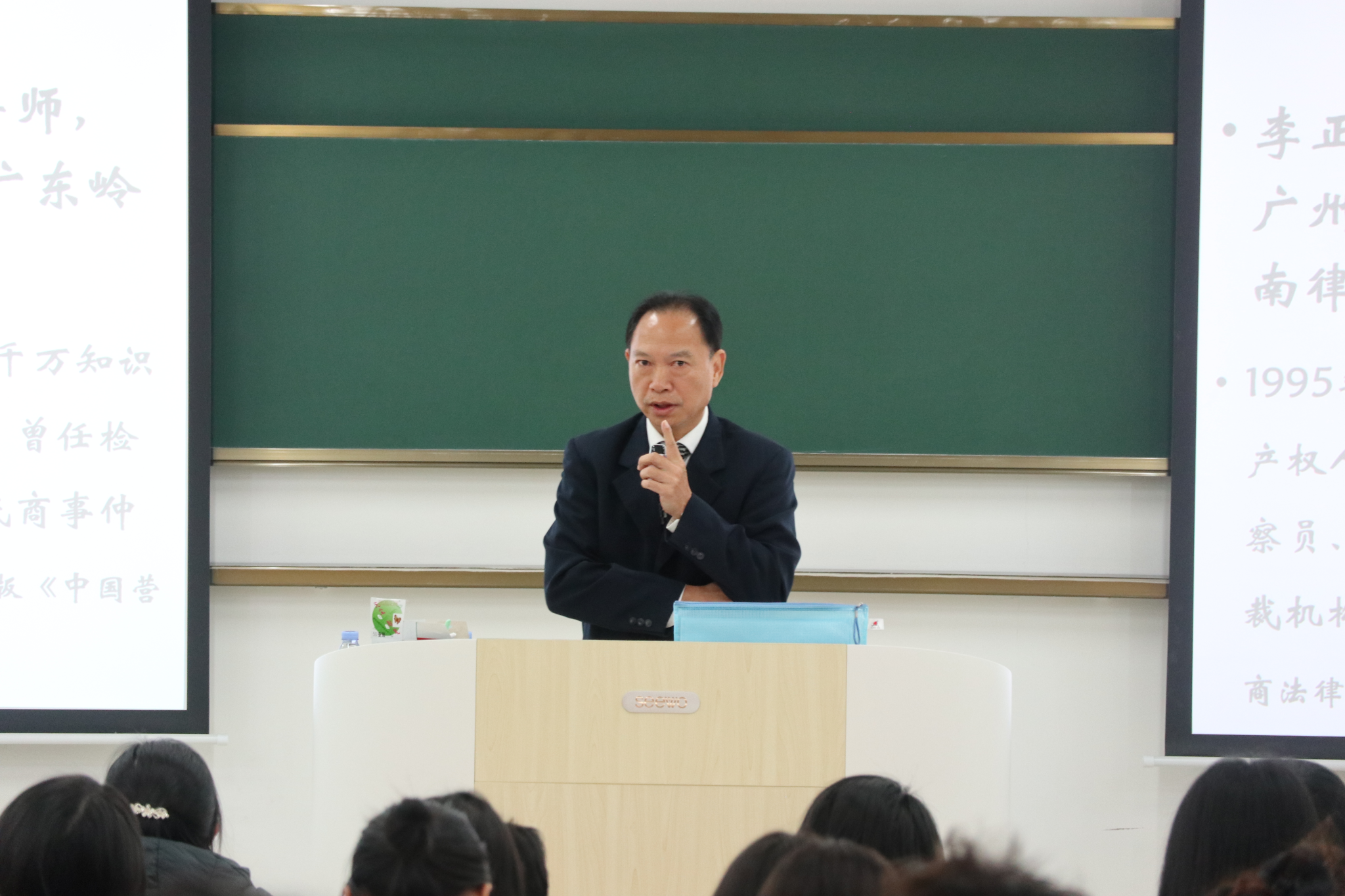 在全面推进依法治国、加快构建中国特色哲学社会科学的新征程上,学术规范已不仅是“学术共同体”的自律准则,更是提升国家文化软实力、抢占创新制高点的战略支点。值广州新华学院二十周年校庆之际,由广州新华学院主办、科研处与太阳成集团tyc33455联合承办的“筑牢学术根基 · 守护学术尊严”专题讲座,于11月19日在东莞校区定静楼4-415教室举行。讲座特邀太阳成集团tyc33455院长李正华教授主讲,副院长陈华丽副教授主持。太阳成集团tyc33455副院长叶秀副教授、党总支副书记李鑫老师到场,与200余名师生共享这场思想盛宴。