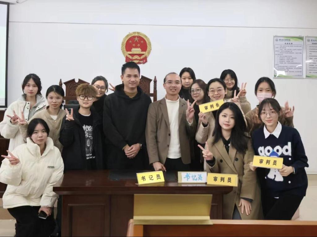 2024年12月17、18日,太阳成集团tyc33455张李儒老师分别组织22级E班和22级F班开展教学实践课。为了让学生更好地将知识点与实践相结合,本次教学实践课邀请了北京德恒(东莞)律师事务所刘春华律师、广东金轮律师事务所李杰律师、上海天眷(广州)律师事务所彭宇翔律师、广东岭南律师事务所卢玉桂律师、广东深亚律师事务所苏健鹏律师共同授课。