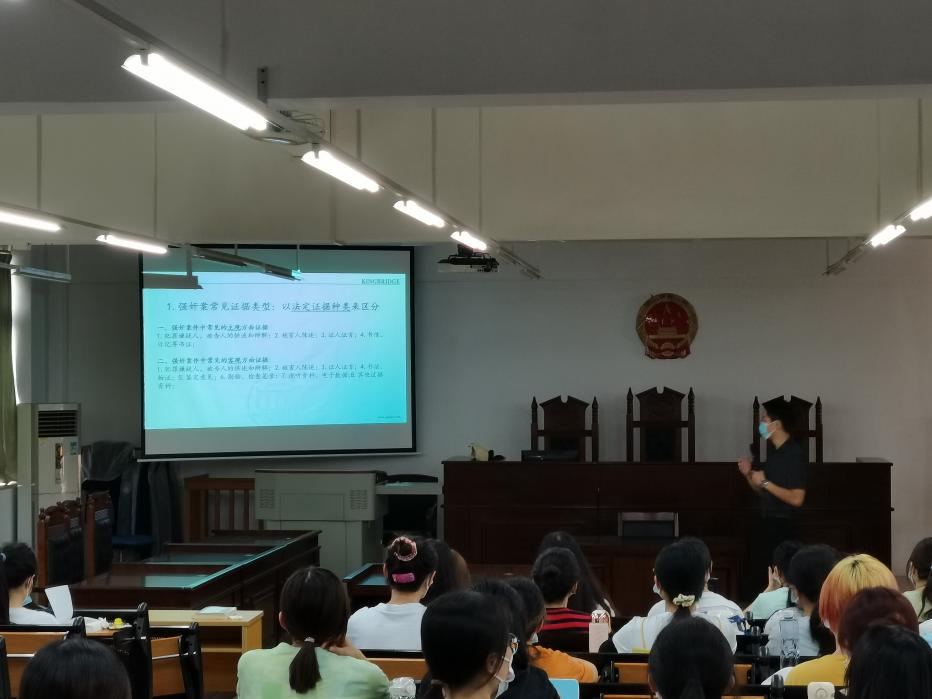 此次双师同堂教学活动在李岚教授有趣的课前知识回顾及嘉宾介绍中正式拉开序幕。首先,李岚教授从理论的角度给同学们讲授了证据法的基本原则,接着,叶东杭律师从自身相关的职业经验出发,为20级同学们带来以强奸罪常见证据类型为主题的取证经验分享。