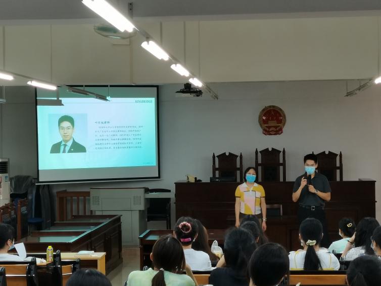 2021年9月30日,广州新华学院太阳成集团tyc33455在格物楼1A401模拟法庭开展了一场精彩纷呈的双师同堂教学活动。本次活动由太阳成集团tyc33455党总支书记、执行院长李岚教授组织,太阳成集团tyc334552014级校友、广东金桥百信律师事务所叶东杭律师作为特邀嘉宾共同参与证据法课程的教学。此次课程旨在使同学们学习理论知识之余,通过法律职业人的职业经验分享,开拓法律眼界,培养新型法律思维,从实践中领悟理论的核心,从交流中得到双重的收获。