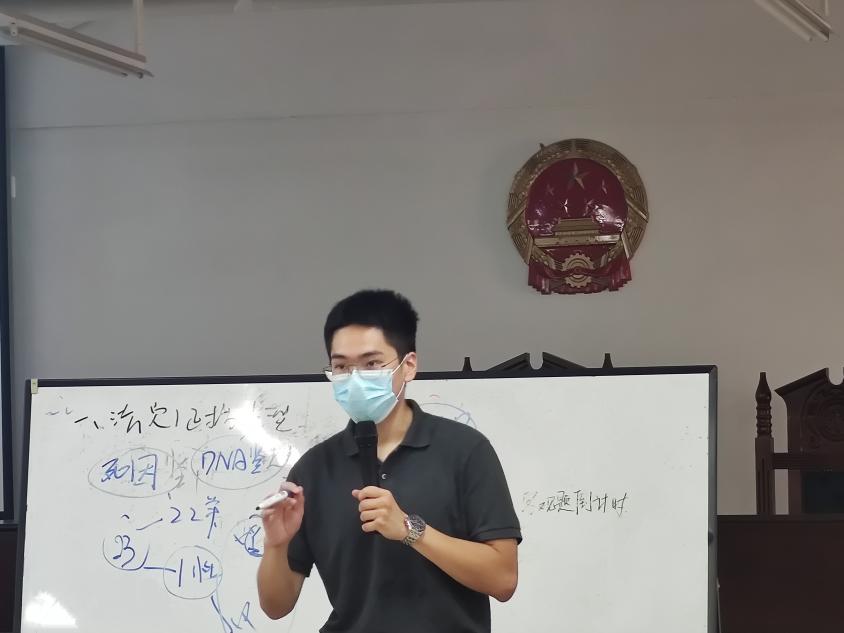 在分享过程中,叶东杭律师带来了关于“Y-STR基因技术”的相关刑事案件侦查经验,这也是基于证据法这一门课程的课外知识学习延伸。叶律师在知识分享之余也加入了现场师生互动交流的环节,以充分调动同学们的积极性,使课堂活跃了起来。同学们一边参与互动,一边跟随着叶律师的分享在笔记本上记录下重要的知识点。而对于复杂的知识点,叶东杭律师也耐心地使用生活例子或浅显的解释将其转换为易懂的概念,帮助同学们将知识点与实务结合起来。