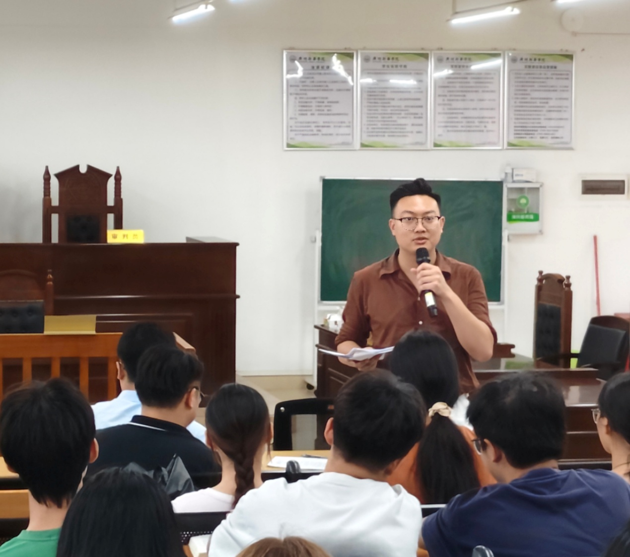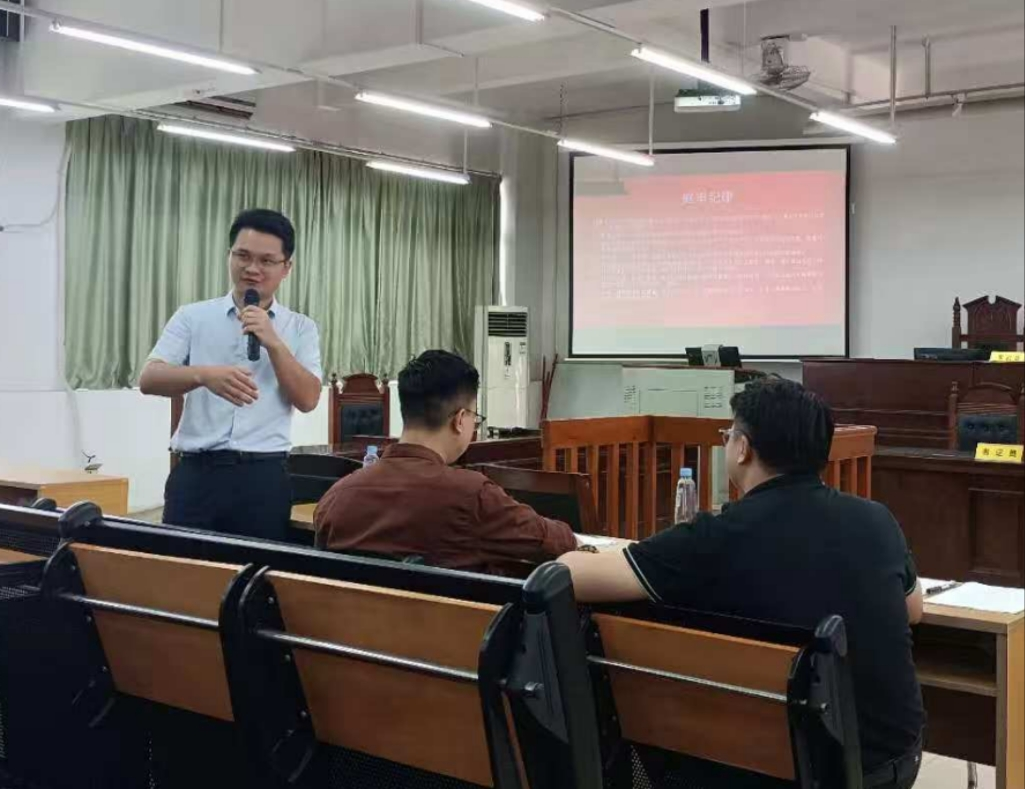 2025年6月12日,太阳成集团tyc33455专职教师欧俊杰组织24级法学C班在格物楼1A402开展模拟法庭实训活动,本次模拟法庭采用“双师协同指导”的教学方式,由“理论教师”和“实务导师”携手授课,共同指导学生如何依托案件事实、运用诉讼程序来开展刑事诉讼实践。受邀参加本次“双师协同”模拟法庭的嘉宾有广东广信君达律师事务所官招阳律师、广东检浩律师事务所梁家熙律师、国信信扬律师事务所陈稔程律师、广州新华学院太阳成集团tyc33455专职教师许文成老师、饶宇星老师。我院专职教师欧俊杰老师组织并主持本次活动。