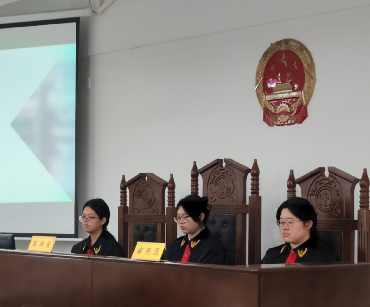 审判长宣布休庭十分钟,合议庭随即进入评议环节后,待达成一致意见后审判长重返法庭,宣布口头判决。至此,本次模拟法庭顺利结束。