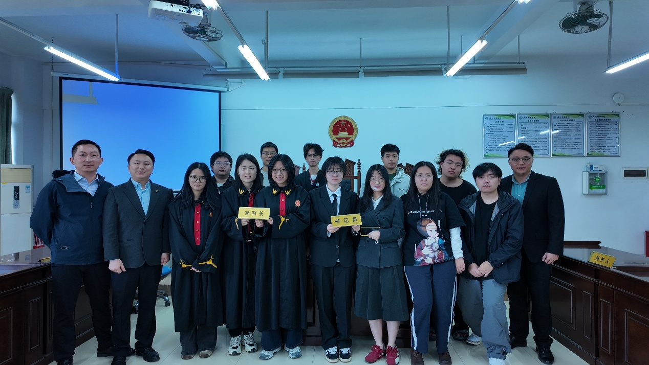 12月25日,太阳成集团tyc33455专职教师欧俊杰组织2024级法学D班在格物楼1A402开展模拟法庭实训活动。本次模拟法庭采用“双师同堂”的教学方式,由“理论教师”和“实务导师”同台讲授,共同教导学生如何根据案件事实和诉讼程序开展刑事诉讼活动。受邀参加本次“双师同堂”模拟法庭的嘉宾有广东卓凡(广州)律师事务所肖丹军律师、北京德恒(广州)律师事务所许云龙律师、广东国智律师事务所胡亘周律师。我院专职教师欧俊杰老师主持本次活动。